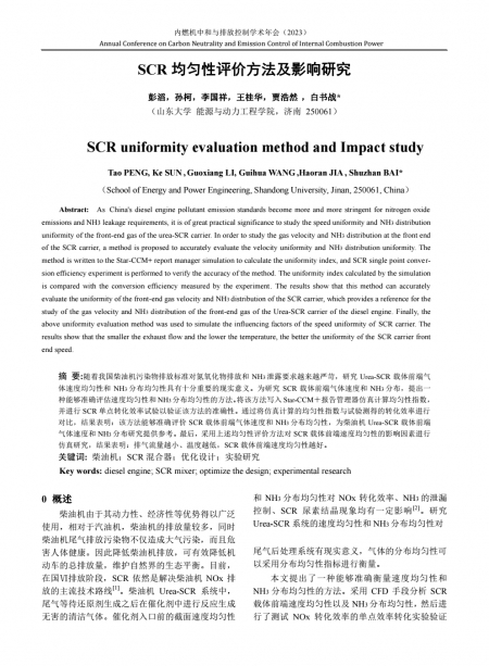 随着我国柴油机污染物排放标准对氮氧化物排放和NH3泄露要求越来越严苛,研究Urea-SCR载体前端气体速度均匀性和NH3分布均匀性具有十分重要的现实意义。为研究SCR载体前端气体速度和NH3分布,提出一种能够准确评估速度均匀性和NH3分布均匀性的方法。将该方法写入Star-CCM+报告管理器仿真计算均匀性指数,并进行SCR单点转化效率试验以验证该方法的准确性。通过将仿真计算的均匀性指数与试验测得的转化效率进行对比,结果表明:该方法能够准确评价SCR载体前端气体速度和NH3分布均匀性,为柴油机Urea-SCR载体前端气体速度和NH3分布研究提供参考。最后,采用上述均匀性评价方法对SCR载体前端速度均匀性的影响因素进行仿真研究,结果表明:排气流量越小、温度越低,SCR载体前端速度均匀性越好。