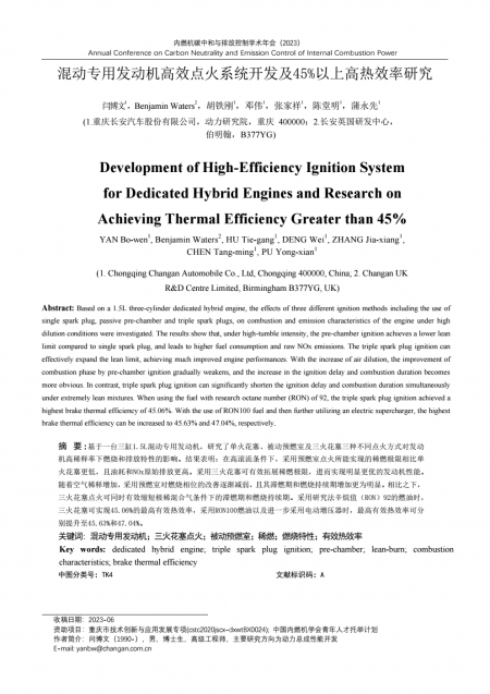 论文全文 - 2023 内燃机“高效、低碳、清洁燃烧”学术年会 高原内燃机分会(第二分会场)