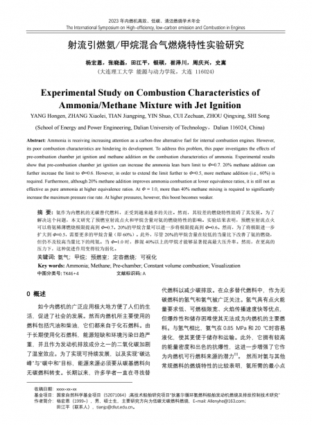论文全文 - 2023 内燃机“高效、低碳、清洁燃烧”学术年会 燃烧节能净化分会(第一分会场)
