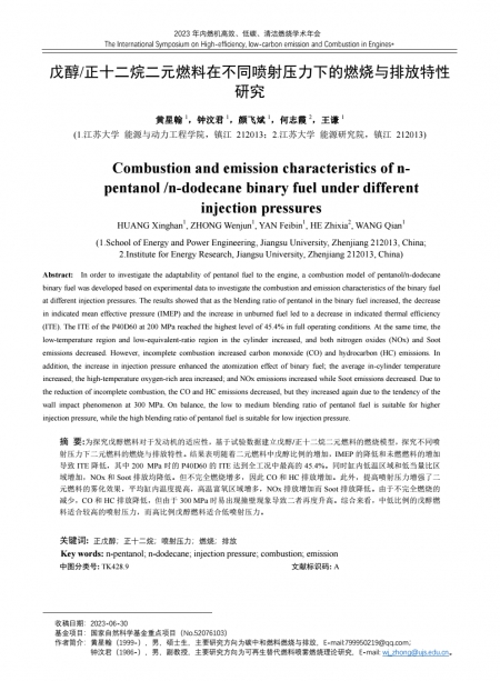 论文全文 - 2023 内燃机“高效、低碳、清洁燃烧”学术年会 高原内燃机分会(第二分会场)