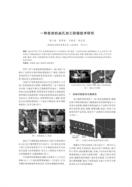 通过对WP10国Ⅴ机型顶面油孔加工方式的研究,设计制作一套油孔钻通自动检测装置,并且应用PLC程序控制,实现柴油机生产过程中油孔不通导致的异常件的自动识别、筛选、提醒、报警功能,实现生产线工件百分百检测,提高工件加工的防错率和产品质量,强化生产制造过程的自动化监控能力,切实提高柴油机制造过程的稳定性和可靠性。